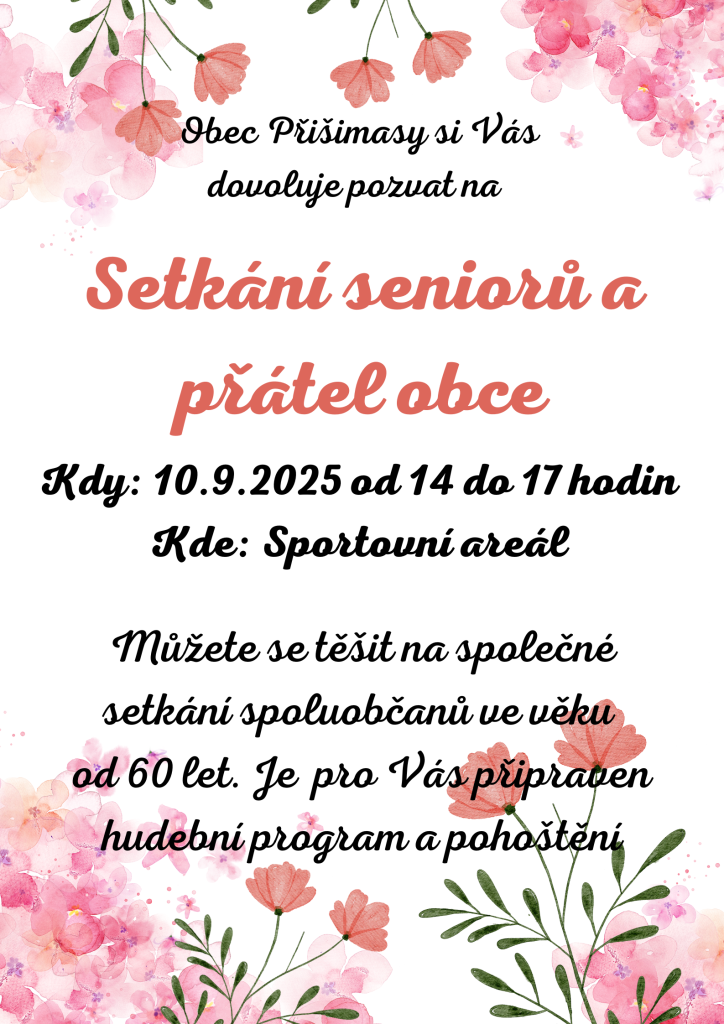 Pozvánka na "Setkání seniorů a přátel obce", středa 10.9.2025 (14 - 17 hodin)