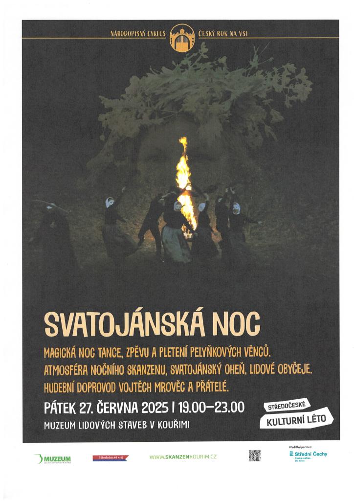 Pozvánka na magickou noc tance, zpěvu, lidových obyčejů u svatojánského ohně i s hudebním doprovodem.